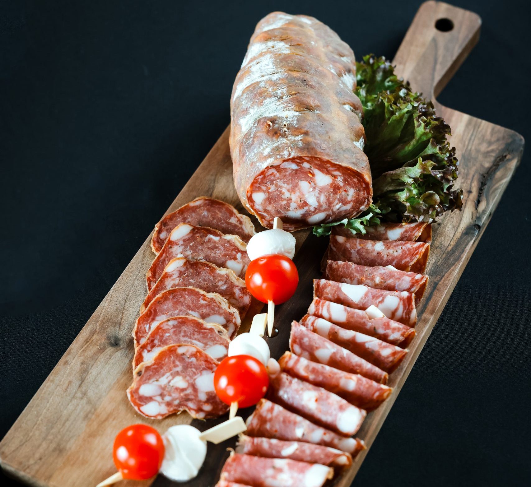 Naša domaća vinska kobasica je savršen spoj bogatog ukusa svinjskog mesa i vina, što je čini jedinstvenom i neodoljivom. Pripremljena prema tradicionalnoj recepturi, ova kobasica se odlikuje specifičnom aromom koja dolazi od pažljivo biranog vina koje se koristi u procesu pripreme. Savršena je za sve ljubitelje gurmanskih užitaka, idealna kao zakuska ili grickalica uz čašu vina. Njena sočna tekstura i delikatni začini čine je odličnim izborom za sve prilike, od svakodnevnog obroka do svečanih trenutaka.